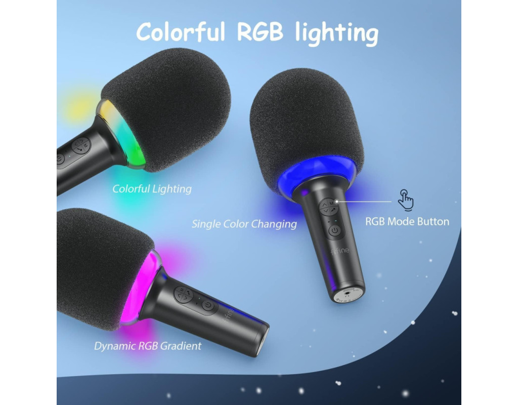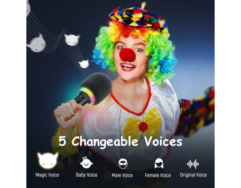 | Стабільна передача Bluetooth 5.2 забезпечує миттєве сполучення між бездротовим мікрофоном і вашим пристроєм. Чудово сумісний із планшетами/iPad, ноутбуками, мобільними телефонами iOS iphone та смартфонами Android, бездротовий мікрофон для співу позбавляється традиційного єдиного підключення, але оснащений бездротовим зв’язком і 3.5-міліметровим входом Aux. Має 5 видів зміни голосу (жіночий, чоловічий, дитячий, магічний голос і оригінальний голос) інтегровані в бездротовий мікрофон Bluetooth. |