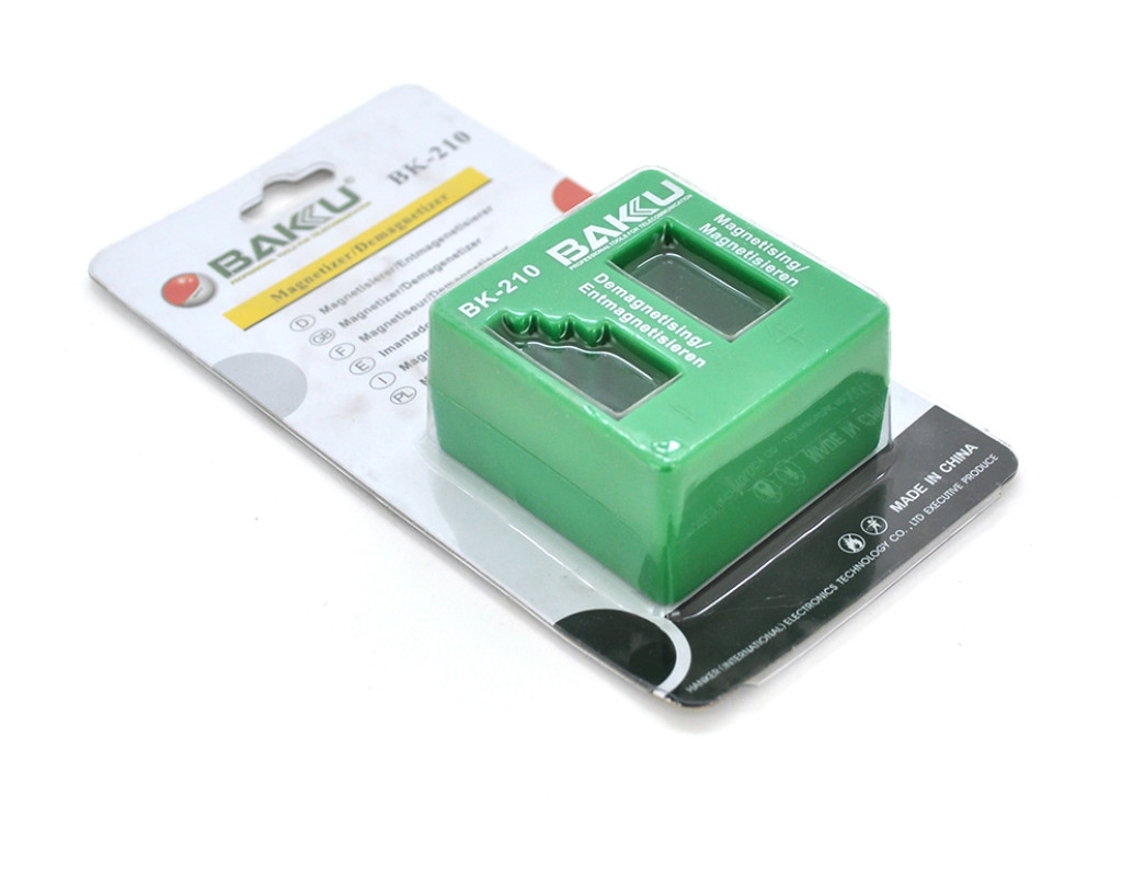 | Магніт для викруток BAKKU BK-210 - дозволить вам намагніт і розмагніт ваші викрутки. Для чого це потрібно? З намагніченою викруткою набагато зручніше дістати гвинт із корпусного отвору, тому це значно полегшує роботу. Також є функція розмагнічування, для ремонту чутливих до магнітного поля приладів (годинник, радіо тощо). Призначений для: • викрутки • пінцетів • ключів • лопаток та ін. Характеристики: • магніт для викруток • кількість в упаковці – 1 шт. • упаковка – блістер |