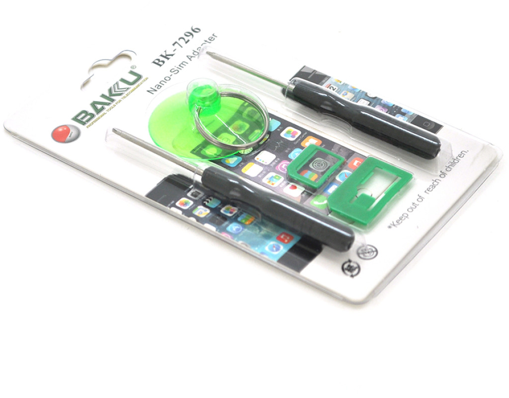 | Набір інструментів BAKKU BK7296 - призначений для полегшення ремонтних робіт Iphone. У наборі є все необхідне для безболісного розбору корпусу і ремонту 'нутрощів' яблучного пристрою. У наборі: • присоска • Nano-sim адаптер • дві викрутки хрестова 1,3, зірка 0,8 Характеристики: • матеріал – пластик / метал • кількість інструментів в упаковці – 4 шт. • упаковка - блістер / коробка |