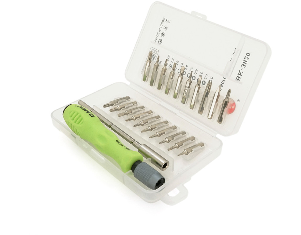 | Набір викруток BAKKU BK-3020 - універсальна річ у кожний будинок чи майстерню! Одна ручка + 20 насадок, допоможуть відкрутити або закрутити необхідний шуруп, гвинт та інші елементи кріплення. Все, що може знадобитися для точних робіт, ремонту мобільних та побутових пристроїв, для домашнього використання – знаходиться в даному наборі! Склад набору викруток: • 2 «Pentalobe» для п`ятикутних гвинтів техніки Apple. • 4 Тorx Т3,Т4,Т5,Т6 – для гвинтів смартфонів, ноутбуків • 5 насадок із прямим шліцем діаметром від 1,5 до 4 мм із кроком 0,5. • 4 насадки хрестових шліць «Philips» PH1, PH0, PH00, PH000. • 1 трилопатевий шліц «Tri-wing» 3,0 – для гвинтів, що використовуються в електротехніці. • 1 тригранник 'Triangle' 2,3 - для гвинтів іграшок, обчислювальної техніки, авто. • 1 'Spanner' 2,6 для гвинтів з антивандальним захистом. • 2 Тorx з отвором Т8, Т10 – для циліндричних гвинтів особливості: • велика кількість насадок • якісні матеріали виготовлення • надійна фіксація насадок Характеристики: • матеріал наконечників - хром-ванадієва сталь • матеріал рукоятки – пластик • довжина рукоятки – 10,3 см • довжина подовжувача – 9,5 см • упаковка – коробка • кількість в упаковці - рукоятка – 1 шт. - подовжувач - 1 шт. - насадки – 20 шт. |