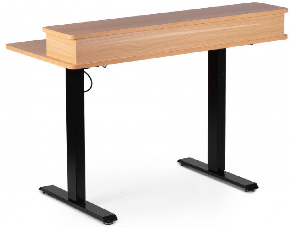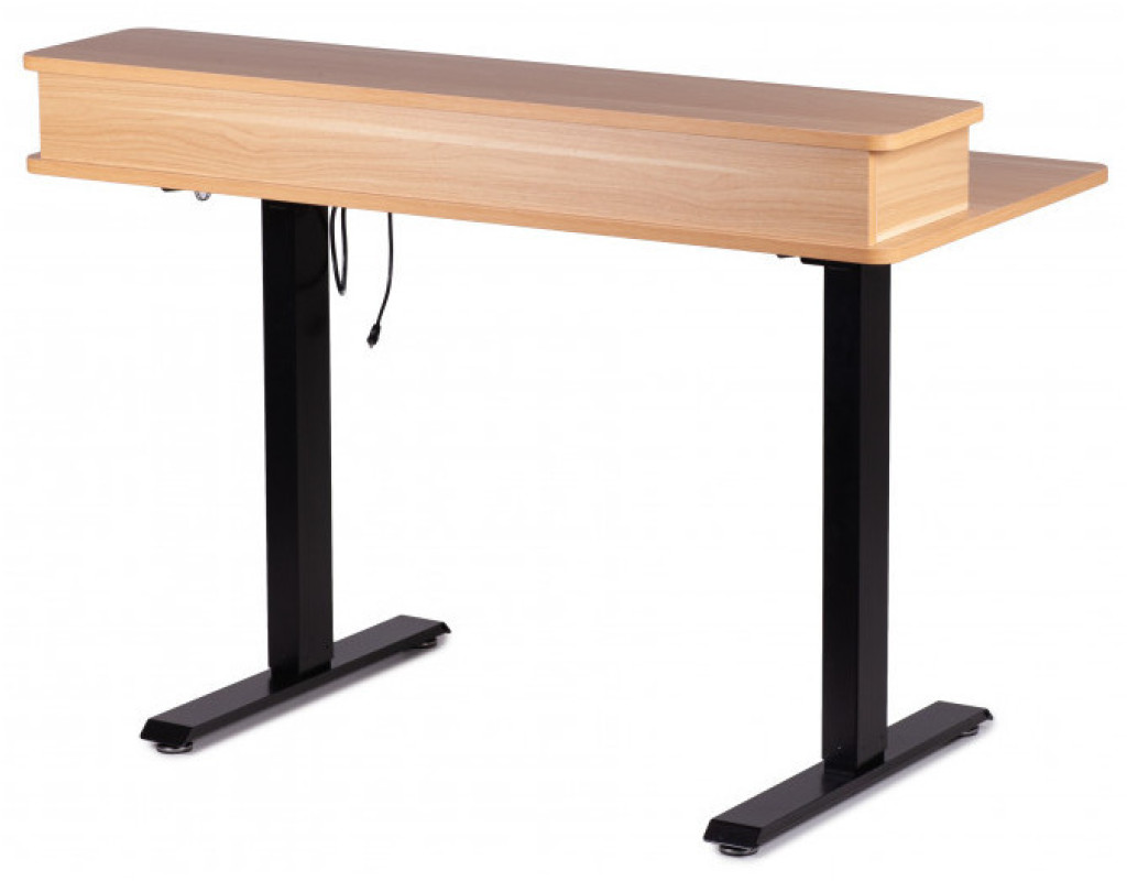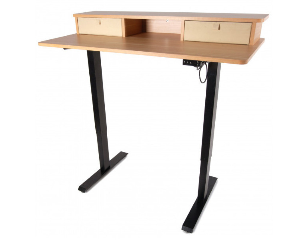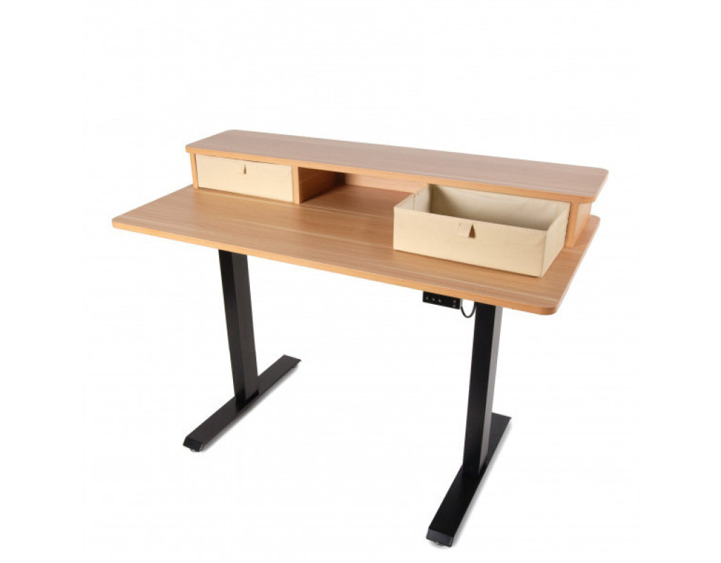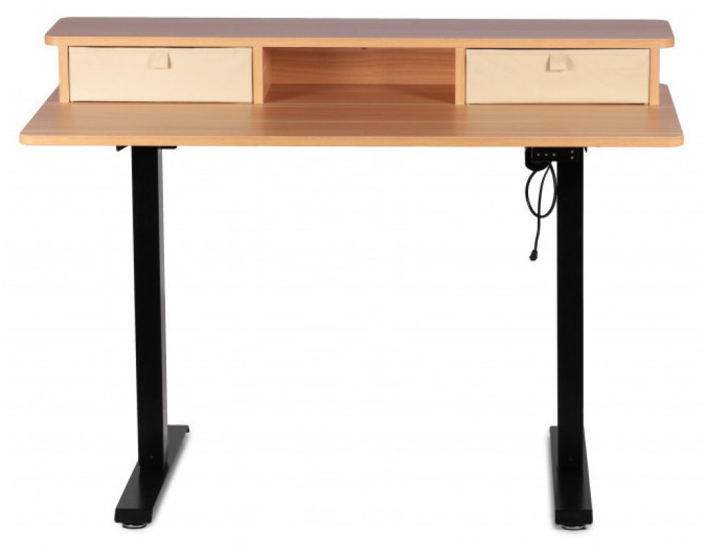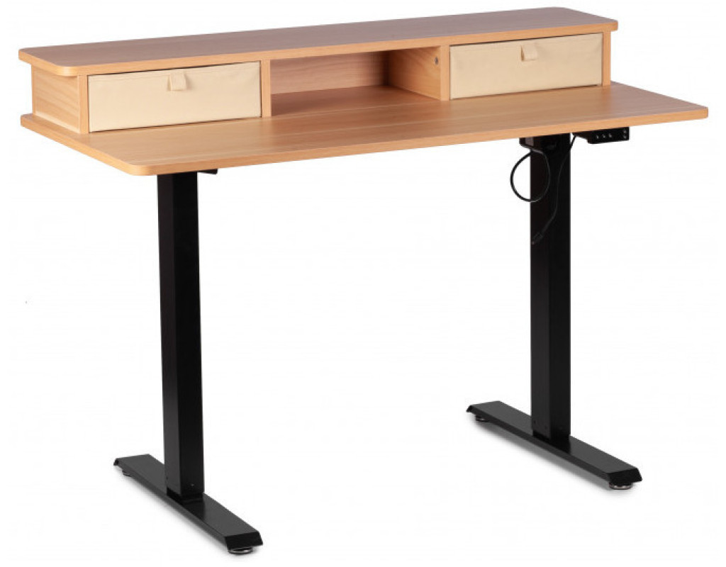 Стіл із регулюванням висоти. Керування з дисплеєм на стільниці. Піднімається стіл за допомогою двигуна, розташованого в царі під стільницею. Розмір стільниці 1200*600 мм. Висота регулюється від 710 до 1200 мм. Стіл піднімається плавно та безшумно. Регульований стіл зручний тим, що його можна підлаштувати під будь-яке зростання, якщо ви плануєте працювати тільки сидячи. Але головна фішка всіх підйомних столів у тому, що одним натисканням кнопки ви можете змінити положення та продовжувати працювати. Стільниця з акуратними висувними ящиками добре підкреслить інтер'єр будь-якого будинку чи офісу. Користь роботи стоячи в тому, що ви частіше змінюєте положення, а значить, частіше рухаєтеся протягом дня. Крім того, ваші тканини не відчувають весь день тиску крісла і у вас не буде відчуття оніміння в кінці робочого дня. М'язи згинача стегна не перебувають у постійній напрузі. Поперек теж не перенапружена цілий день. За рахунок частої зміни становища працюють різні м'язи. ергономічна стільниця стійка конструкція безпечні обтічні плавні форми столу металеві ноги з регульованими ніжками для вирівнювання горизонту затишний зовнішній вигляд В комплекті: -2 висувні ящики |