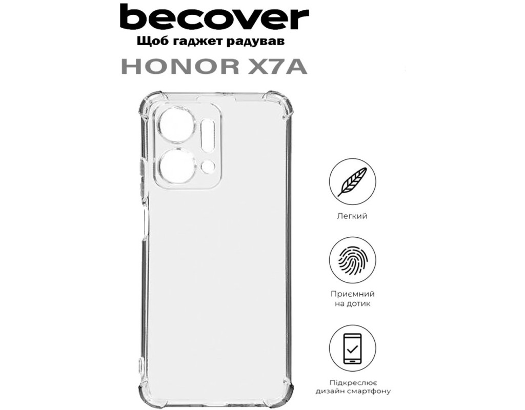 сумісність з моделями - Honor X7a, Тип чохла для телефону - накладка, Призначення - модельний, Колір - прозорий