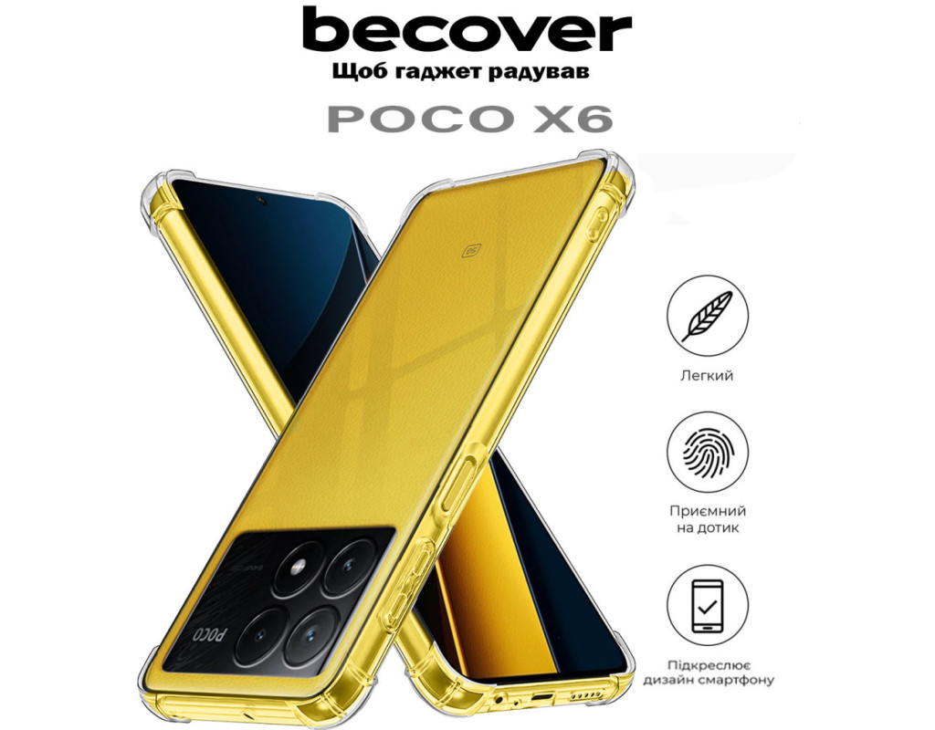 сумісність з моделями - Xiaomi Poco X6, Тип чохла для телефону - накладка, Призначення - модельний, Колір - прозорий