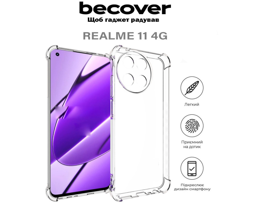 сумісність з моделями - Realme 11, Тип чохла для телефону - накладка, Призначення - модельний, Колір - прозорий