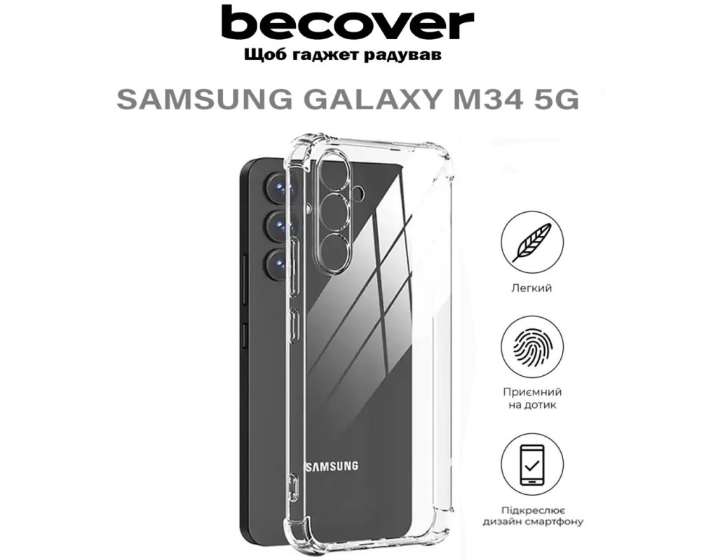сумісність з моделями - Samsung Galaxy M34, Тип чохла для телефону - накладка, Призначення - модельний, Колір - прозорий