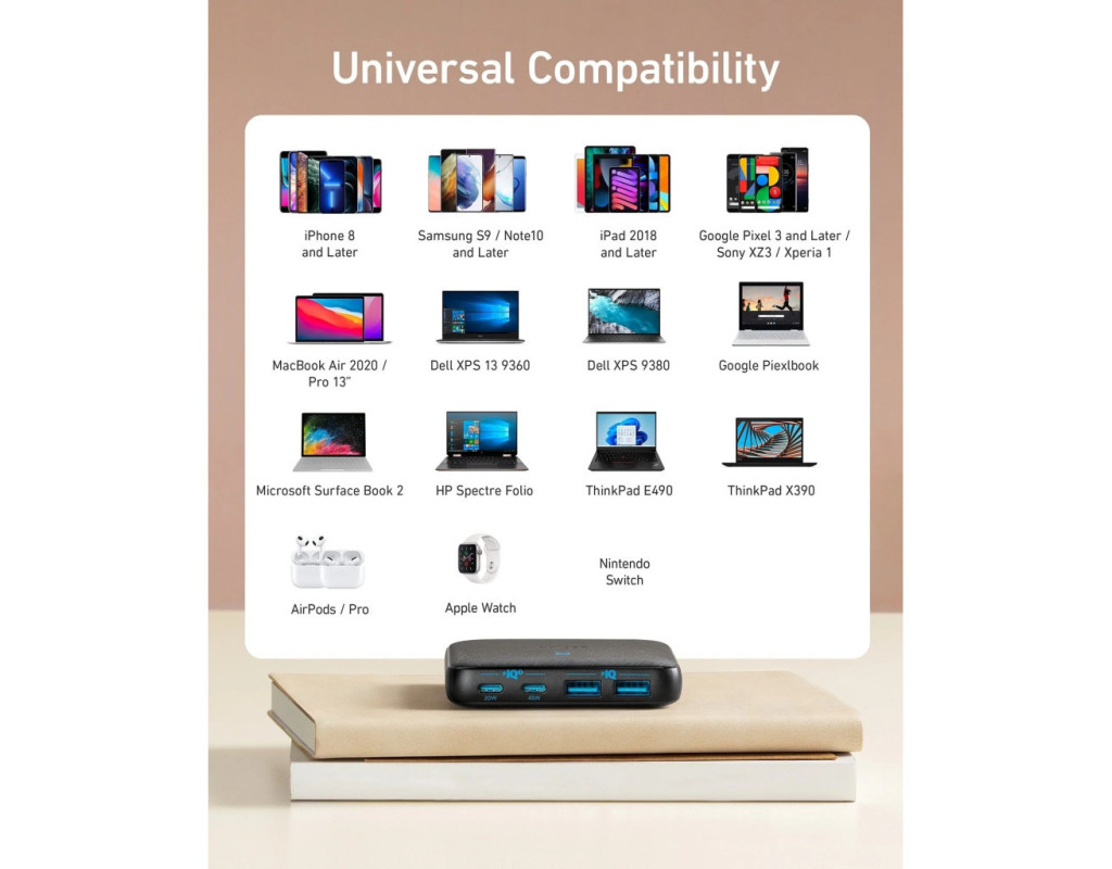 | Зарядний пристрій Anker PowerPort 543 Atom III Slim 4 - 65W - це універсальний адаптер, який перетворює живлення з мережі в ефективну зарядку для ваших пристроїв. З потужністю 65 Вт і вихідним струмом до 3 А, він забезпечує швидку зарядку завдяки технологіям Quick Charge 3.0 і Power Delivery. Ідеально підходить для смартфонів, планшетів і ноутбуків, включаючи iPhone 13, Samsung S20, iPad Pro, MacBook Air та багато інших. Його інноваційний компактний дизайн товщиною всього 18 мм чудово підходить для зручного розташування на столі або в рюкзаку. Використання нітриду галію (GaN) робить його одним із найменших на ринку, не жертвуючи потужністю. Оснащений 4 різноманітними портами, включаючи два USB Type-C та два USB-A, що дозволяє заряджати до чотирьох пристроїв одночасно. Завдяки ексклюзивній технології MultiProtect, Anker гарантує високий рівень безпеки: контроль температури та захист від перевантаження дарують впевненість у кожному сеансі заряджання. Цей пристрій - вірний партнер для тих, хто цінує якість і ефективність в кожній деталі. |