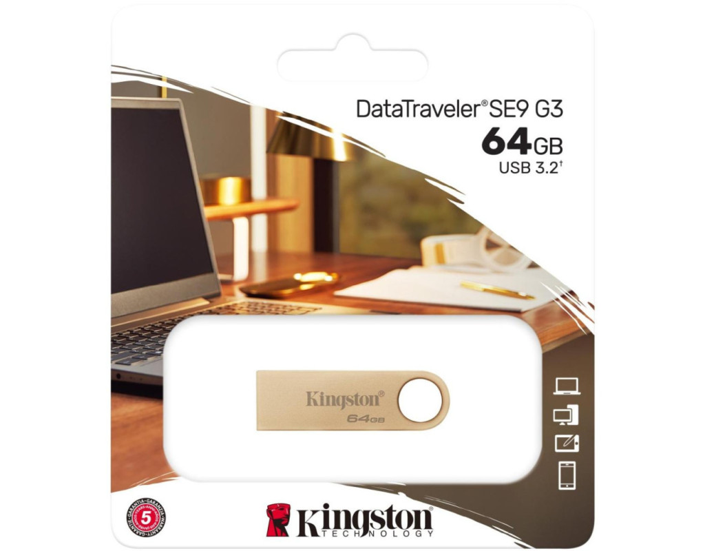 USB флеш накопичувач Kingston 64GB DataTraveler SE9 G3 Gold USB 3.2 (DTSE9G3/64GB) — це поєднання преміальної якості та стильного дизайну для тих, хто цінує надійність і елегантність. Високошвидкісний інтерфейс USB 3.2 забезпечує неймовірну швидкість передачі даних: до 220 Мбайт/сек при читанні та до 100 Мбайт/сек при запису. Ці характеристики роблять зберігання та обмін файлами швидкими і зручними, дозволяючи вам зосередитись на важливих справах, не витрачаючи зайвий час. |