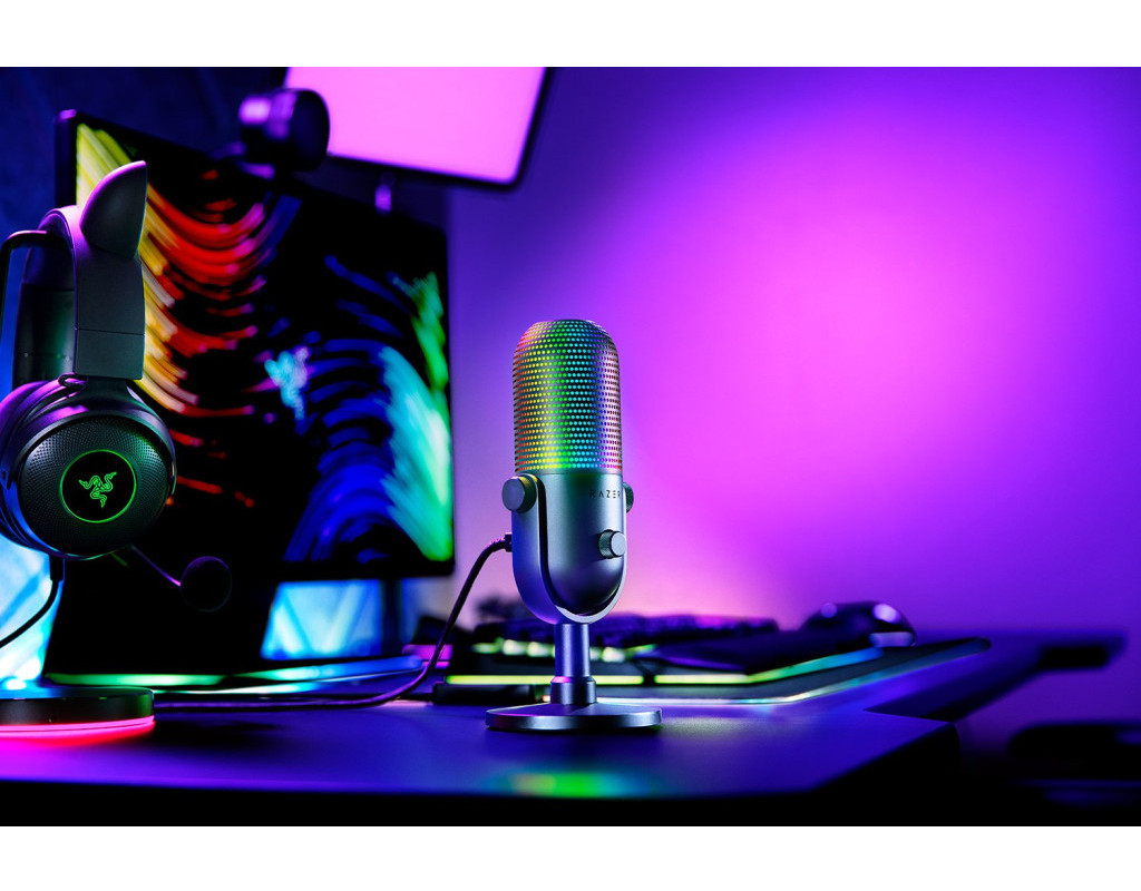 Мікрофон Razer Seiren V3 Chroma — це не лише відмінний інструмент для стрімінгу та потокових трансляцій, але й елемент, який може підкреслити вашу індивідуальність завдяки своїй яскравій RGB-підсвітці. Цей USB-мікрофон відзначається потоковим підсвічуванням, що дозволяє вам контролювати освітлення і підкреслювати ваш голос за допомогою 10 зон RGB. За бажанням ви можете обрати один серед різноманітних запропонованих ефектів, які відповідатимуть вашому настрою та атмосфері ваших ігор. Легке торкання верхньої частини мікрофона дозволяє вам миттєво вимкнути або умикнути звук. Також ви можете налаштувати функціональність кнопки для подвійного або потрійного торкання, щоб змінювати налаштування підсвітки. Довге натискання дозволить вам змінити ефект підсвічування та гучність мікрофона. Завдяки додатковому програмному забезпеченню Synapse ви зможете налаштувати роботу мікрофона, включаючи додаткові параметри підсвітки та налаштування кнопки вимкнення звуку. Мікрофон має світловий індикатор, який показує, коли звук вимкнено, що особливо зручно для перерв у розмові чи під час використання Discord. Ви можете налаштувати світлові ефекти Chroma відповідно до вашого бажання, використовуючи доступні варіанти в програмному забезпеченні Synapse або додаткові модулі Chroma для розширених можливостей. |