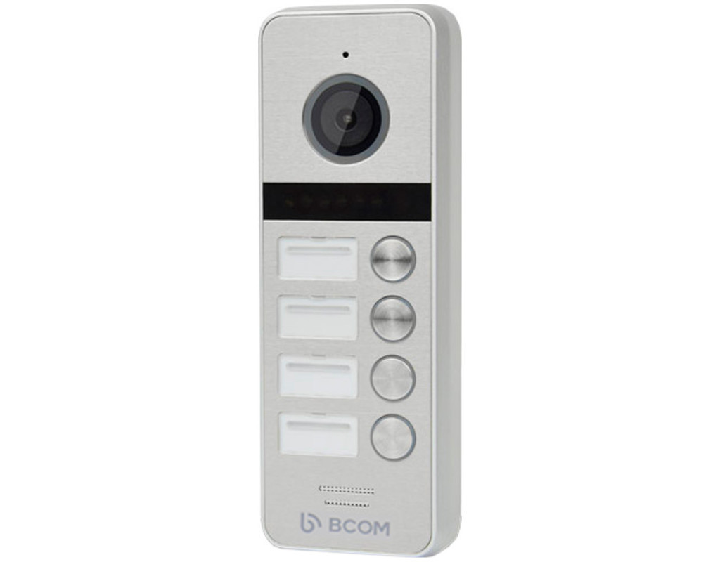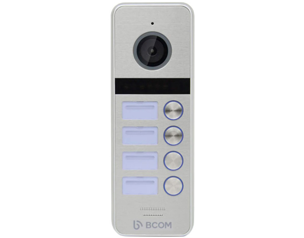 Відеопанель BCOM BT-404HD Silver - переговорний пристрій, який дозволяє, знаходячись зовні приміщення і без безпосереднього контакту почути та переговорити з охороною або господарем (залежно від ситуації) приміщення. Призначена для забезпечення безпечного та контрольованого доступу до квартири, приватного будинку, офісу чи іншого житлового чи робочого приміщення. Кольорова відеопанель BCOM BT-404HD Silver на 4 абоненти з високою роздільною здатністю HD 1280x720 і широким кутом огляду 120°. Спосіб встановлення накладний. Особливості відеопанелі BCOM BT-404HD Silver: