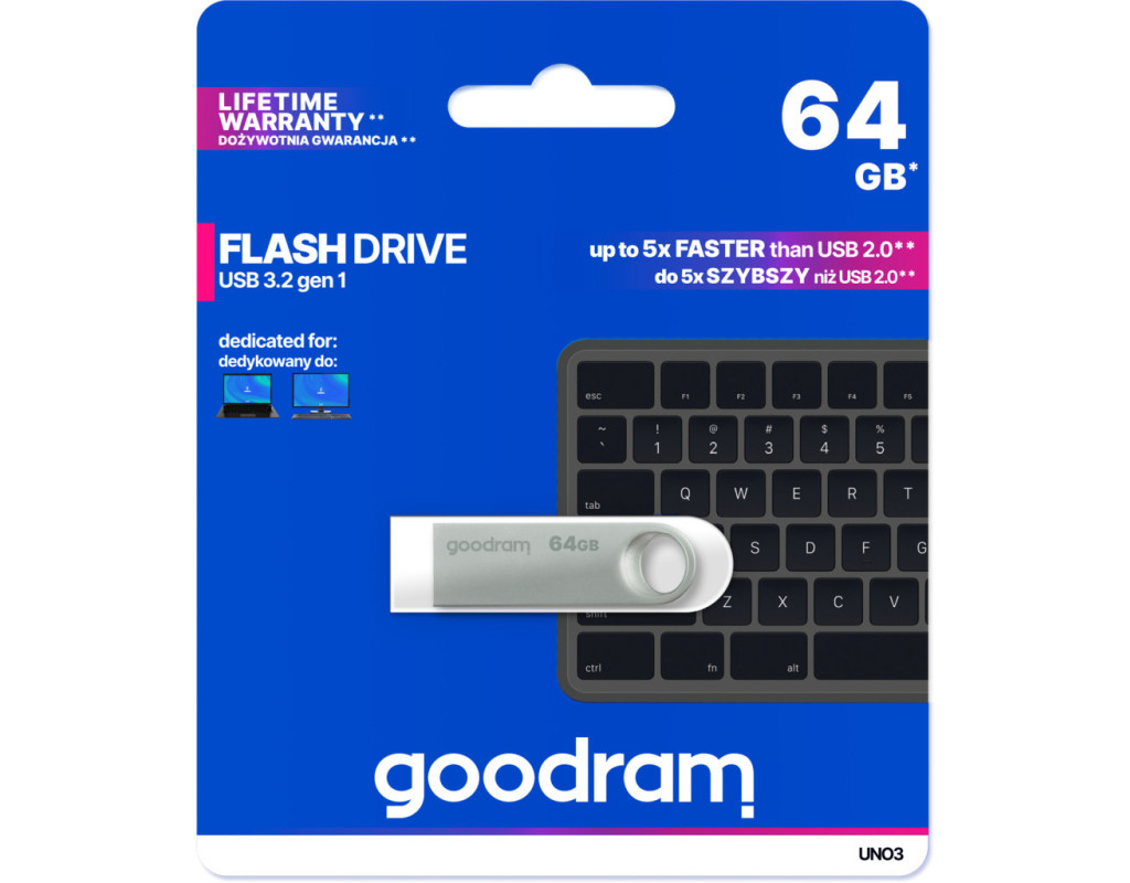 Флеш-накопичувач UNO3 доступний в п’яти різних варіантах ємності – від 16 до 256 ГБ. Завдяки використанню високоякісних компонентів він досягає швидкості читання 60 МБ/с і швидкості запису до 20 МБ/с. Це означає не тільки швидку передачу даних, але й високу продуктивність, що, в свою чергу, означає комфортне та ефективне використання. |
