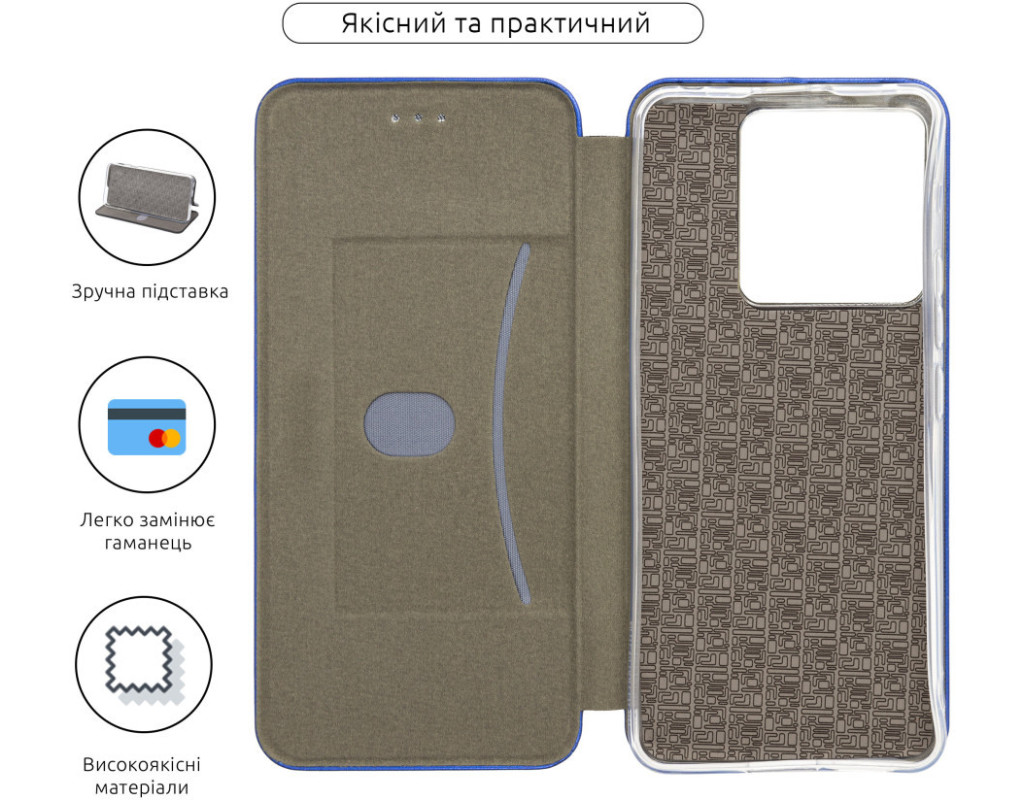 сумісність з моделями - Xiaomi Poco X6 5G, Тип чохла для телефону - книжка, Призначення - модельний, Матеріал - штучна шкіра, силікон, Колір - синій