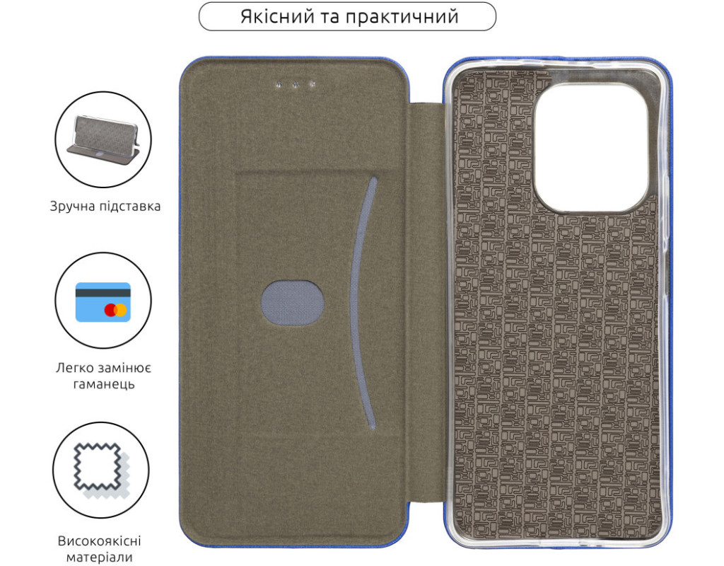 сумісність з моделями - Xiaomi Redmi Note 13, Тип чохла для телефону - книжка, Призначення - модельний, Матеріал - штучна шкіра, Колір - синій