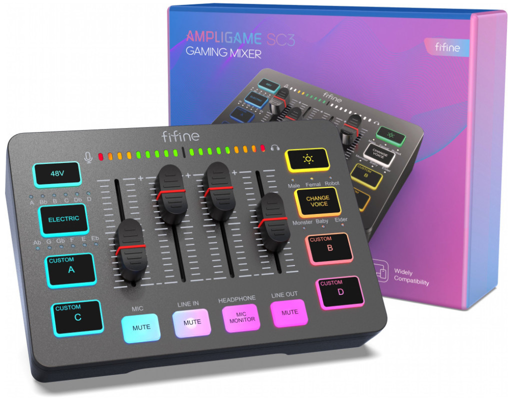 Мікшер FIFINE SC3 - це незамінний інструмент для аудіопрофесіоналів, музикантів, геймерів та ведучих, які шукають високу якість звуку, простоту використання і надійність. Замовляйте FIFINE SC3 вже сьогодні і дайте своїй аудіо-творчості заблищати!