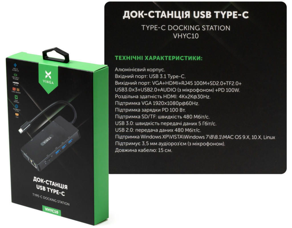 | Концентратор Vinga USB-C 3.1 to VGA+HDMI+RJ45+3xUSB3.0+USB2.0+SD/TF+PD100W+Audio (VHYC10) – це ідеальне рішення для сучасних користувачів, які цінують якість та функціональність. Завдяки своїм вихідним роз'ємам, цей компактний пристрій легко підключається через інтерфейс USB Type-C 3.1 і надає безліч можливостей для підключення різноманітних пристроїв. Концентратор обладнаний VGA та HDMI портами, що дозволяє насолоджуватися якісним зображенням на будь-якому дисплеї. Порт RJ45 забезпечує стабільний доступ до мережі, а три порти USB 3.0 та один USB 2.0 дозволяють підключати периферійні пристрої. Завдяки функціям SD/TF та PD100W, можна заряджати ваші гаджети з максимальною швидкістю і зчитувати дані з карт пам'яті. Додатковий аудіо роз'єм робить концентратор Vinga незамінним для різноманітних задач. Підкреслюючи унікальні переваги, цей концентратор забезпечує бездоганну інтеграцію всіх ваших цифрових пристроїв. |