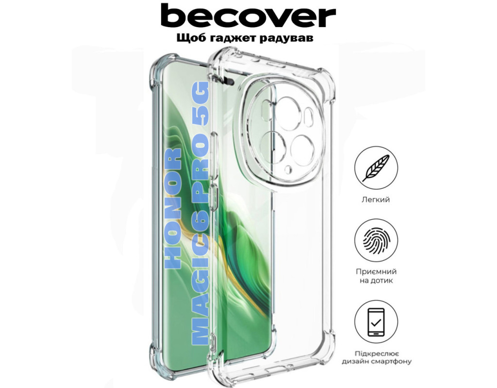 сумісність з моделями - Honor Magic6 Pro 5G, Тип чохла для телефону - накладка, Призначення - модельний, Колір - прозорий