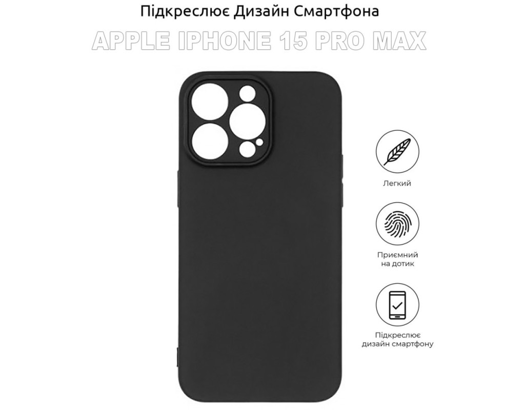 сумісність з моделями - Apple iPhone 15 Pro Max, Тип чохла для телефону - накладка, Призначення - модельний, Матеріал - силікон, Колір - чорний