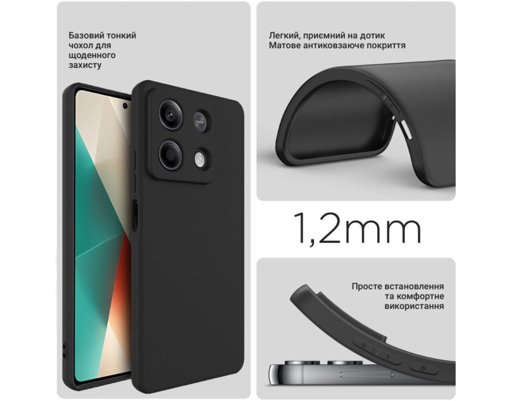 сумісність з моделями - Xiaomi Redmi Note 13 Pro 5G, Тип чохла для телефону - накладка, Призначення - модельний, Матеріал - силікон, Колір - чорний