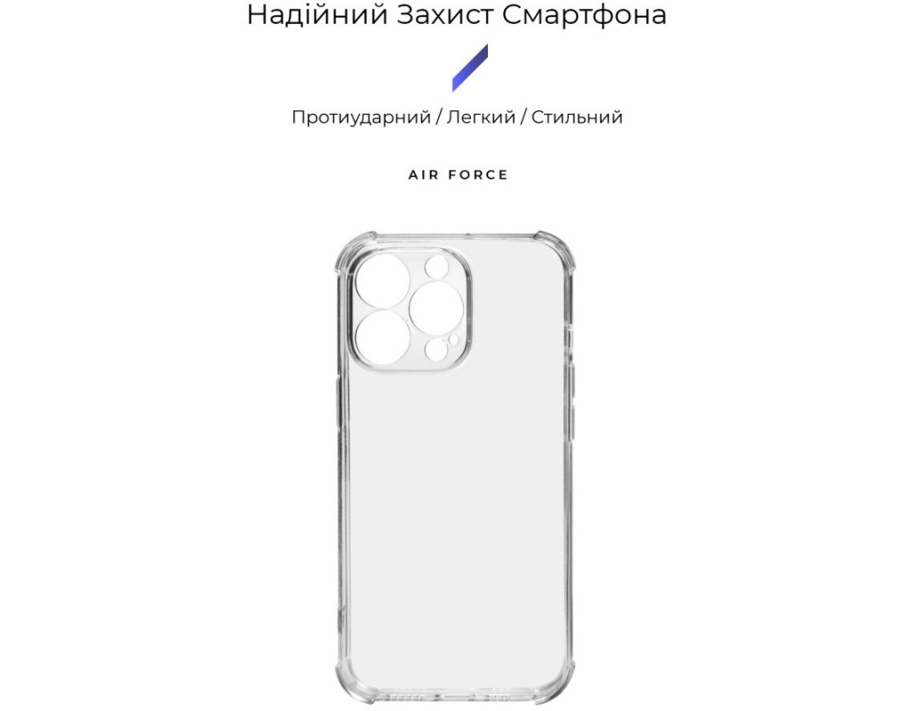 сумісність з моделями - Apple iPhone 13 Pro, Тип чохла для телефону - накладка, Призначення - модельний, Колір - прозорий