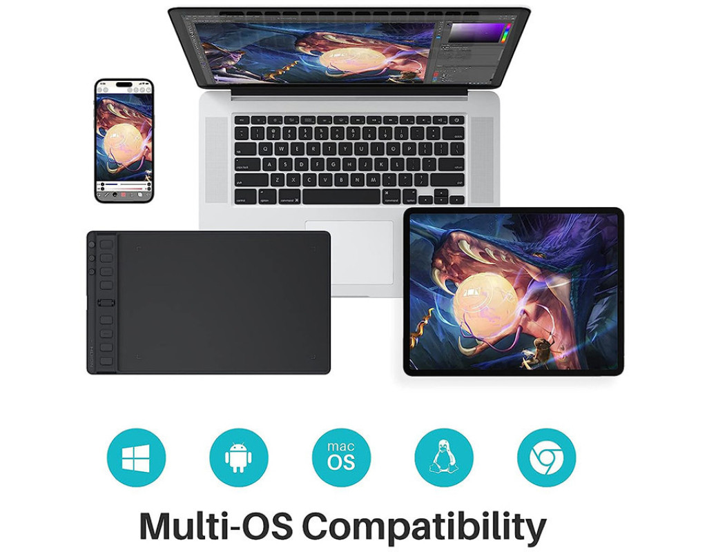 Сумісність із телефоном і планшетом Крім ПК, Inspiroy 2 також сумісний з телефонами і планшетами на базі Android і HarmonyOS, що значно розширює сумісність і дає змогу легко під'єднати його до вашого пристрою, чи то початківець, чи то професійний художник.