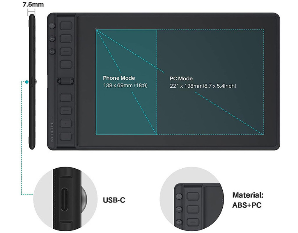 Особливості: - скролер, що налаштовується, аналогічний колесу прокрутки миші. Дуже зручно. - Оснащений 6 програмованими клавішами, користувач може задавати різні функції. - Більш шорстка панель забезпечує природний і схожий на папір лист. - Перо PW110 без батарейок оснащено технологією Huion PenTech 3.0 для підвищення стабільності малювання. - Художники-шульги також можуть поринути у творчість завдяки можливості повороту на 180°. - Завдяки компактним розмірам та невеликій вазі графічний планшет зручно носити із собою. - Сумісність з ОС: Windows, macOS, Linux, ChromeOS, Android та HarmonyOS.