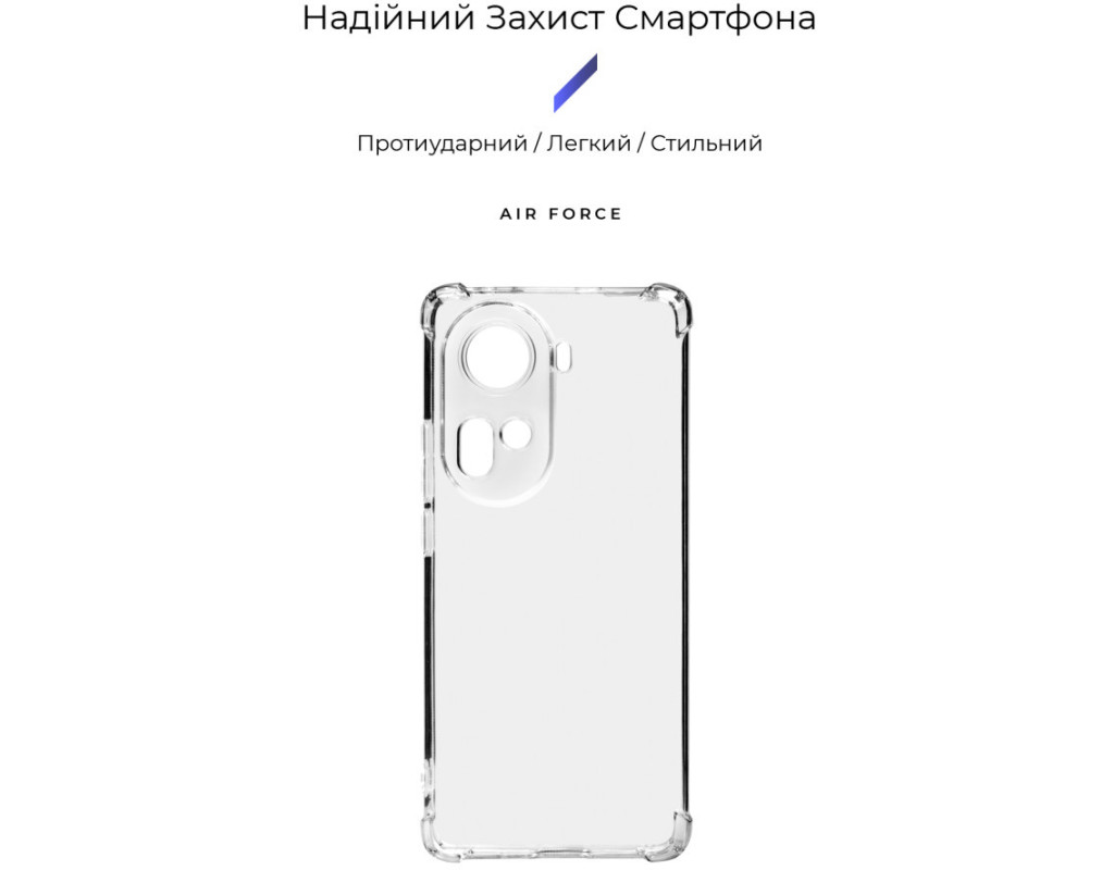 сумісність з моделями - OPPO Reno11 5G, Тип чохла для телефону - накладка, Призначення - модельний, Колір - прозорий