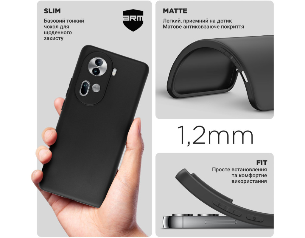 сумісність з моделями - OPPO Reno11 5G, Тип чохла для телефону - накладка, Призначення - модельний, Колір - чорний