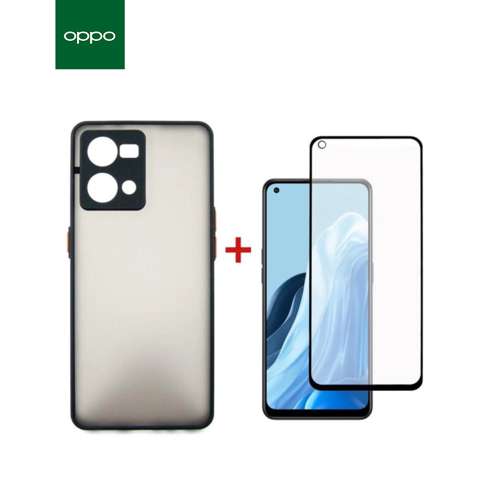 Чохол до мобільного телефона Dengos Kit for OPPO Reno 7 4g case + glass (Black) (DG-KM-32)