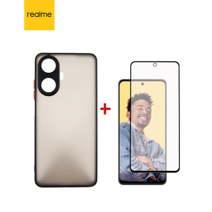 Чохол до мобільного телефона Dengos Kit for Realme C55 case + glass (Black) (DG-KM-34)