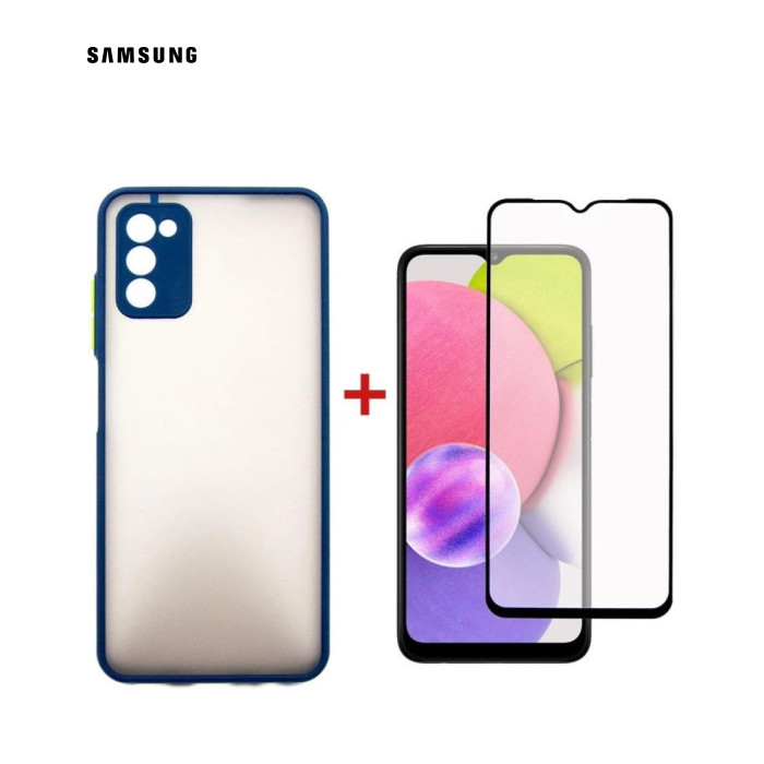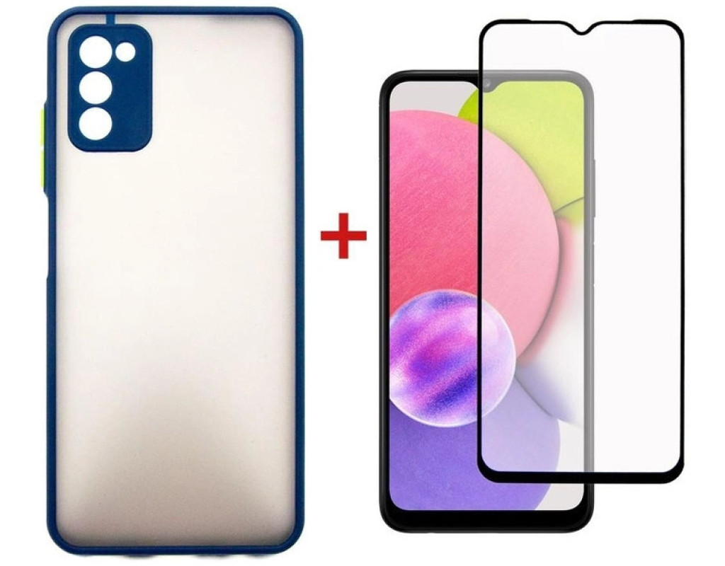Чохол до мобільного телефона Dengos Kit for Samsung Galaxy A03s case + glass (Blue) (DG-KM-25)