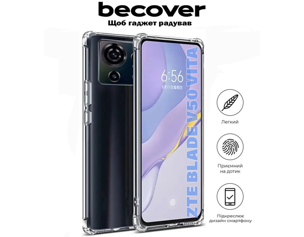 сумісність з моделями - ZTE Blade V50 Vita, Тип чохла для телефону - накладка, Призначення - модельний, Колір - прозорий