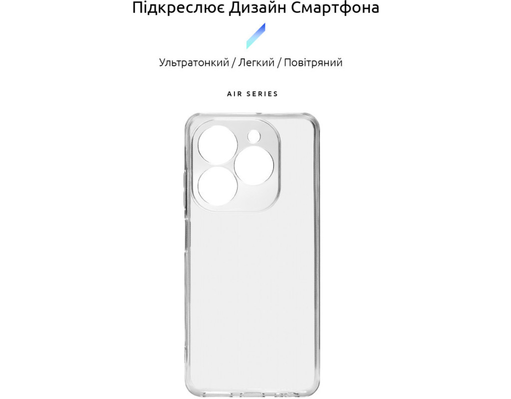 сумісність з моделями - Infinix Smart 8 Plus, Тип чохла для телефону - накладка, Призначення - модельний, Колір - прозорий