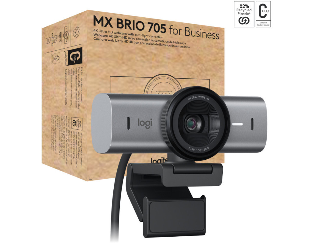 | Виняткова продуктивність, приголомшливий дизайн.MX Brio 705 для бізнесу пропонує чудову якість відео у форматі 4K з вражаючим естетичним дизайном. Ця веб-камера ідеально підходить для кваліфікованих фахівців і керівників, а також розроблена з урахуванням принципів сталого розвитку. Вона забезпечує візуальну досконалість продукту, який сподобається ІТ-спеціалістам. Чудова чіткість завдяки штучному інтелектуЗалишайтеся впевненими і контролюйте ситуацію під час відеодзвінків. Покращення зображення зі штучним інтелектом гарантує чітке і природне зображення і забезпечує природне освітлення обличчя в різних умовах освітлення. Чудова якість зображенняMX Brio 705 для бізнесу оснащена найбільшим серед наших веб-камер датчиком зображення з підсвічуванням, заснованим на технології Sony STARVIS. Вона також включає в себе спеціально розроблений об'єктив і на 70% більші пікселі в порівнянні з Logitech Brio, щоб забезпечити відмінну якість зображення навіть в умовах низької освітленості. Більше природних кольорівMX Brio 705 для бізнесу оснащена технологією RightLight 5 з функцією HDR та покращенням зображення обличчя. Камера автоматично підлаштовується до умов яскравого та слабкого освітлення, точніше передаючи відтінки шкіри. Завжди у фокусіШвидкий і точний автофокус швидко реагує і миттєво перефокусовується на вашому обличчі, коли ви змінюєте положення перед камерою. MX Brio 705 для бізнесу використовує передову технологію автофокусування із замкнутим циклом для забезпечення максимально чіткого зображення. Розроблено з думкою про екологічністьДодайте сучасності відеозустрічам. Масивний низьковуглецевий алюміній, виготовлений з використанням відновлюваних джерел енергії, надає веб-камері сучасного вигляду, водночас зменшуючи вуглецевий слід продукту. Пластикові компоненти містять щонайменше 82% переробленого пластику. Фільтрація шумуДва мікрофони, що формують промінь, відфільтровують навколишній шум, тому співробітників можна чітко чути навіть у шумному середовищі. |