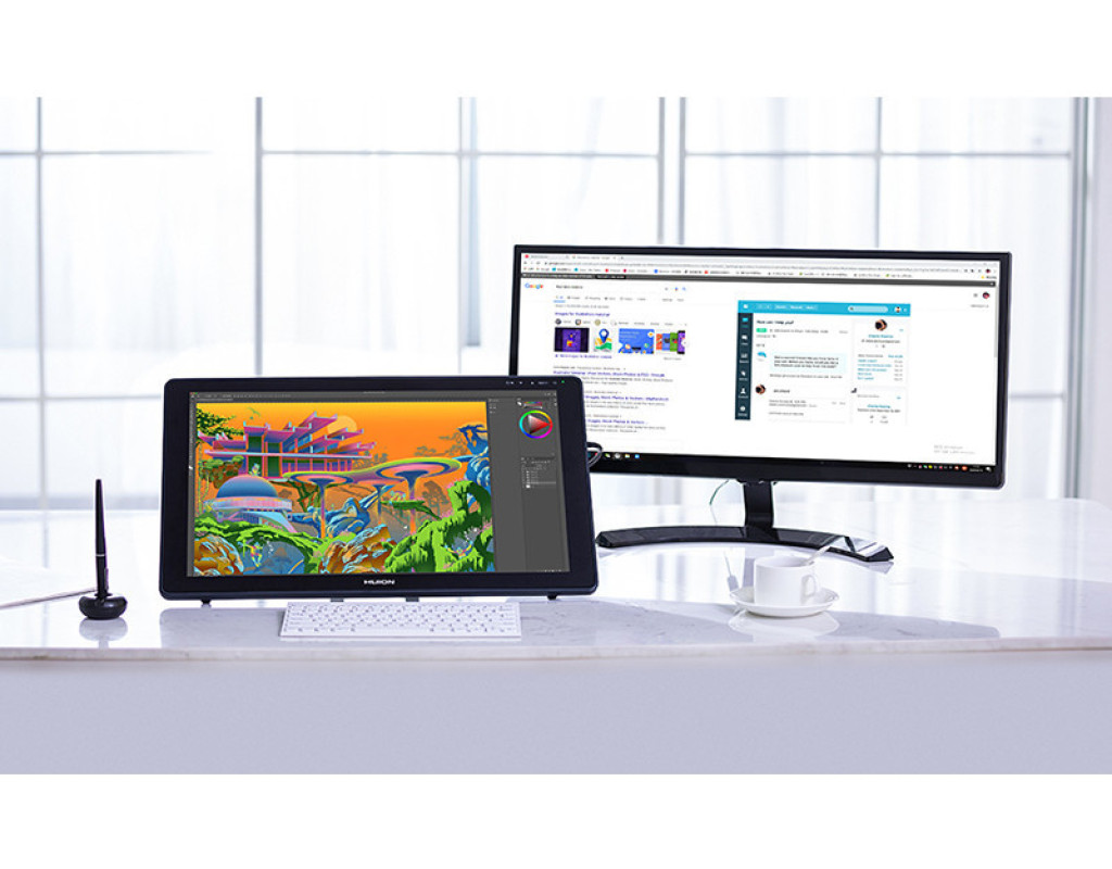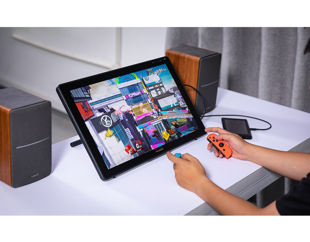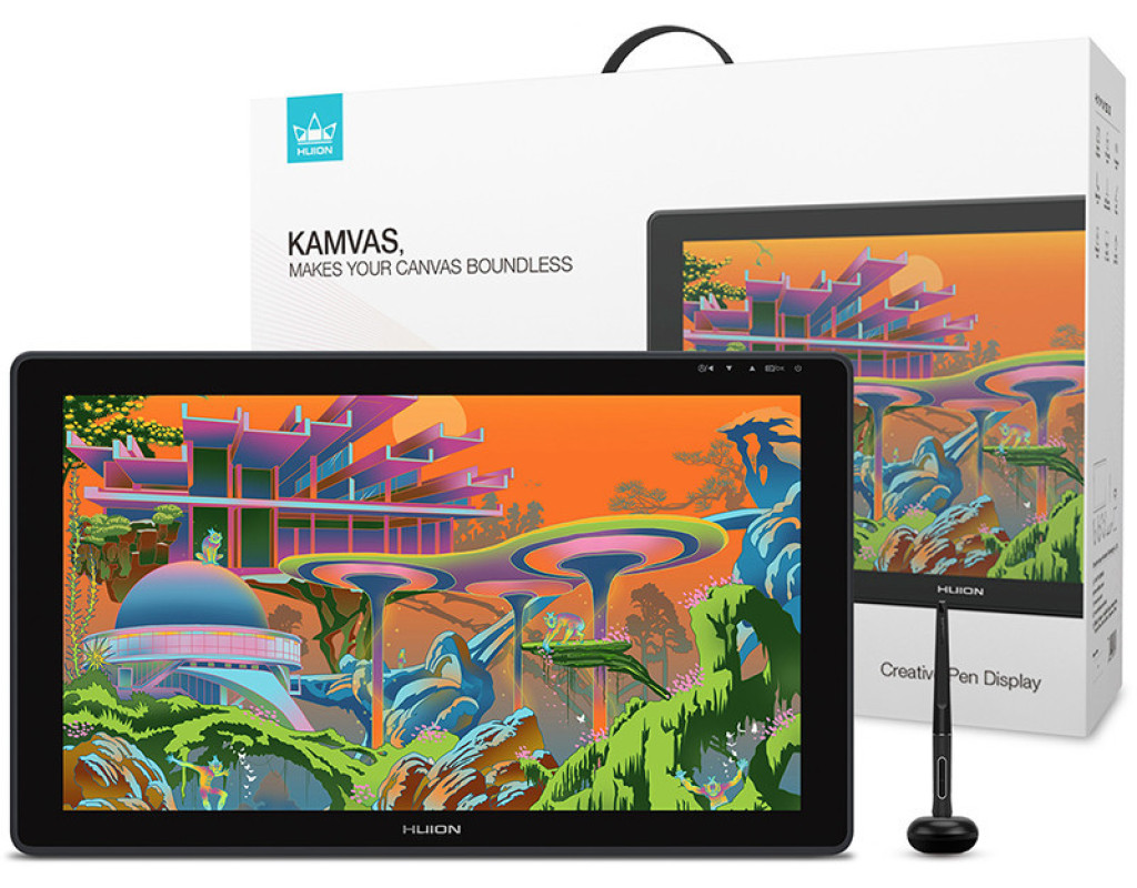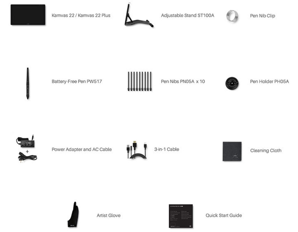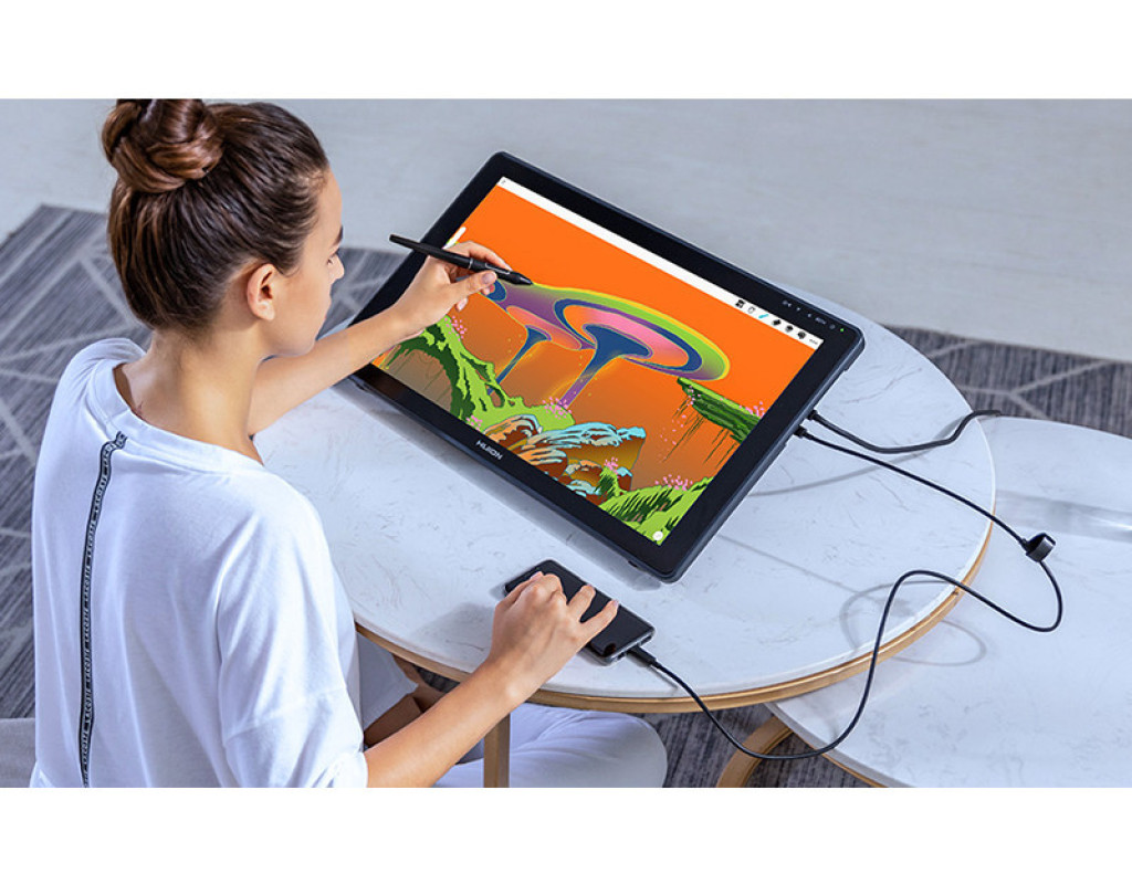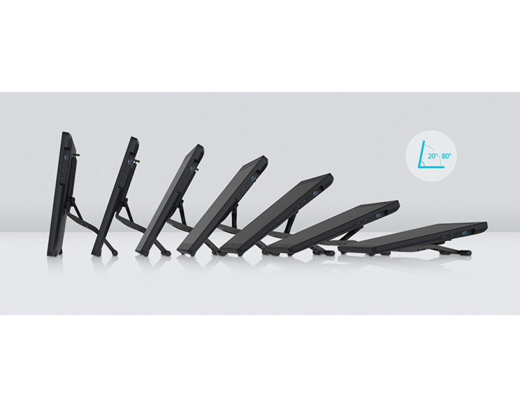 Простий, але потужний Професійний монітор для вашої творчості. Удосконалена технологія передачі кольору на основі квантових точок дає яскраві зображення. Мільйони квітів сяють перед вашими очима Завдяки технології квантових точок колірна гамма Kamvas 22 Plus досягає 140% sRGB, а коефіцієнт контрастності досягає 1200: 1, що допомагає збільшити глибину кольору у вашій роботі. Крім того, користувачі можуть також насолоджуватися прекрасним показом зображення на цьому 21,5-дюймовому екрані, оскільки на ньому можуть природно і живо відображатися 16,7 мільйона квітів. Екран з низьким рівнем синього світла і безпечний для очей Екран, оснащений передовою технологією квантових точок, може ефективно фільтровивать шкідливий для очей синє світло, що значно захищає користувачів від цифрового напруги очей. Чіткі візуальні ефекти навіть в умовах сильного освітлення Екран з покриттям антивідблиску може гарантувати чіткі і яскраві ефекти відображення навіть в умовах сильного освітлення. Завдяки передової технології травлення екран стає більш стійким до подряпин і корозії, а також може створити у користувачів ощущуеніе малювання пером на папері. Крім того, широкий кут огляду в 178 ° і дозвіл екрана 1920 × 1080 дозволяють користувачам насолоджуватися найтоншими деталями з різних сторін. Повністю ламінований екран для більшої точності IPS екран з антибліковим склом повністю ламіновані, що усуває зазор між курсором і пером ручки і тим самим, зводить до мінімуму паралакс і підвищує точність. Дайте волю своєї творчості з допомогою природних дотиків пера Вишукані роботи з природними та чіткими лініями. Ручка-дігітайзер PW517, оснащена PenTech3.0, має знижений магнітний сердечник, що робить його перо більш стійким і покращує якість малювання. Крім того, ручка-дігітайзер PW517, що має 8192 рівня чутливості натиску, при зміні тиску дозволяє користувачам відображати лінії різної ширини і насиченості. Нахиліть ручку, щоб створити більше. Для того, щоб малювати тіні, як справжнім олівцем, ручку-дігітайзер можна нахиляти в межах ± 60 °. Крім того, малювання ліній є плавним і природним без запізнювання і тремтіння. Подвійні порти USB-C приносять більше задоволення Роз'єми USB-C на Kamvas 22 Plus дозволяють користувачам підключати пір'яний дисплей до комп'ютера, телефону Android або планшету через кабель 3 в 1 або USB-C кабелі до USB-C роз'єму, в той час, як роз'єм USB-A призначений для підключення до зовнішніх периферійних пристроїв, таким як клавіатура, USB-диск і т. д. * При підключенні через USB-C до USB-C кабелі необхідне додаткове джерело живлення. Розширення вашого екрану Роз'єм USB-C на Kamvas 22 Plus розроблений для підключення до планшета, комп'ютера, ігрової приставки або телефону Android. Шляхом підключення USB-C кабелі до USB-C порту користувачі можуть насолоджуватися роботою або грою на цьому 21,5-дюймовому великому екрані. * Роз'єми USB-C на телефонах, планшетах і ПК повинні як мінімум підтримувати протокол передачі даних USB3.1 GEN1 і DP1.2. Регульована підставка для більшої ефективності Сіра металева підставка з ергономічним дизайном не тільки відповідає кольору пір'яного дисплея, але і дозволяє користувачам творити під більш зручним кутом від 20 ° до 80 °, що допомагає підвищити продуктивність. Крім того, пристрій є витонченим і тонким, його товщина варіюється від 19 до 26,7 мм. хороша сумісність Kamvas 22 Plus може безперешкодно працюв