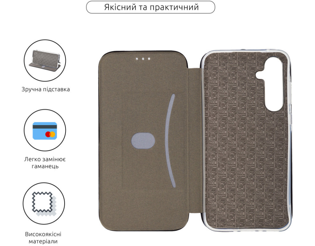 сумісність з моделями - Samsung Galaxy A35, Тип чохла для телефону - книжка, Призначення - модельний, Матеріал - поліуретан, Колір - чорний