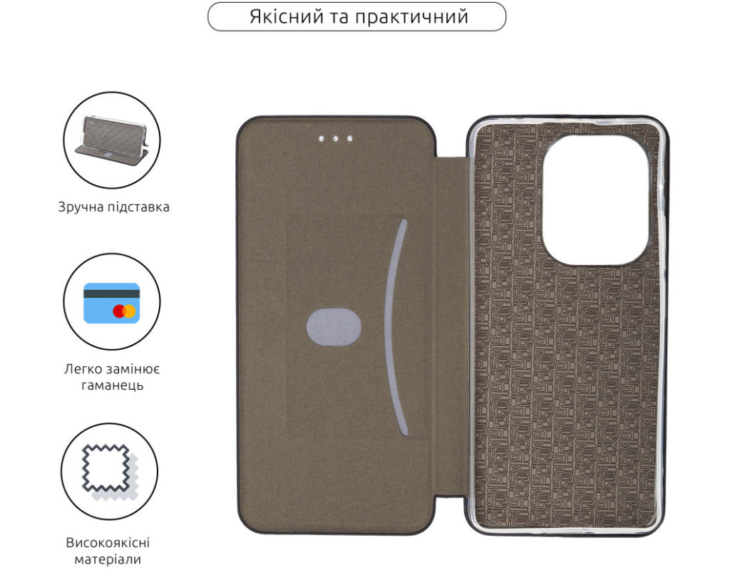 сумісність з моделями - Xiaomi Redmi Note 13 Pro 4G, Тип чохла для телефону - книжка, Призначення - модельний, Матеріал - поліуретан, Колір - чорний