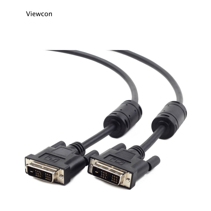 Кабель мультимедійний DVI to DVI 18+1pin, 5 m Viewcon (VC-DVI-104-5 m) призначений для передачі цифрових відеосигналів між передавальним і приймаючим їх відеопристроями, мають DVI-D інтерфейс (комп'ютер, монітор, проектор, LCD та ін). Характеристики мультимедійного кабелю: - Інтерфейс: DVI - Типи конекторів: 2 х DVI 18 + 1 pin - Два кільця феритових - Зовнішній діаметр кабелю: 7 мм - Екранування: 16 х 10 - Довжина: 5 м - Колір: чорний.