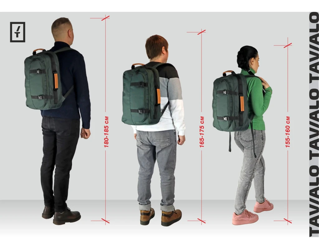 - 2 короткі ручки розташовані таким чином, щоб користувач міг нести рюкзак як сумку (доступні 2 варіанти носіння).