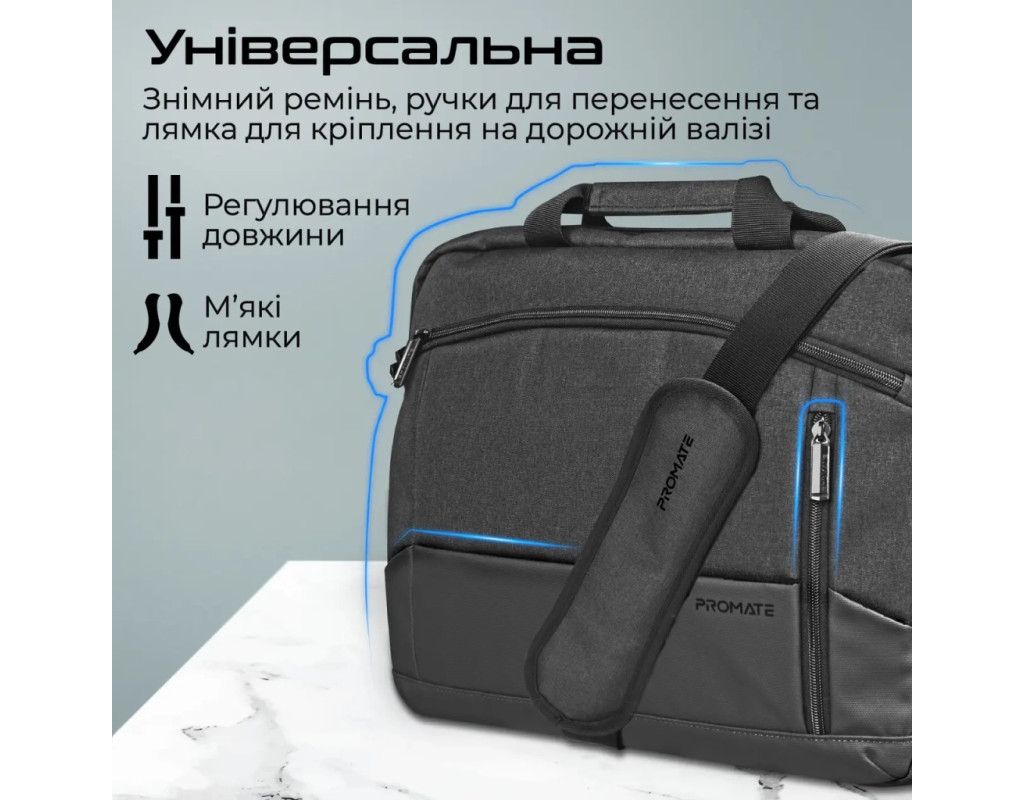 | Сумка для ноутбука Promate 15.6" Satchel-MB black – це зразок бездоганної якості та продуманого дизайну для сучасних професіоналів. Виготовлена з міцного поліестеру, що забезпечує зносостійкість і водонепроникність, ця сумка надійно захищає ваш ноутбук від несподіваних погодних капризів. Незважаючи на місткість, вага сумки становить лише 0.6 кг, що робить її ідеальною для щоденного використання. Satchel-MB пропонує три просторі секції на змійках, включаючи спеціальне відділення для ноутбука діагоналлю 15.6". Додатковий відсік призначений для документів формату А4, а органайзер для дрібних аксесуарів робить сумку надзвичайно функціональною. Ударопоглинаючі вставки забезпечують надійний захист вашого пристрою. Сумка виконана в стилі SleekComfort™, що підкреслює її елегантність і доповнює будь-який образ. Знімний ремінь з м'якою накладкою, регульовані ручки та лямка для кріплення на валізі забезпечують максимальний комфорт у користуванні. Promate Satchel-MB стає досконалим універсальним аксесуаром для повсякденного життя. |