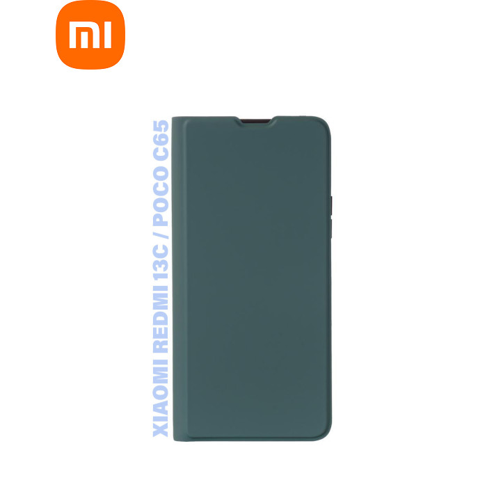 сумісність з моделями - Xiaomi Redmi 13C, Xiaomi Poco C65, Тип чохла для телефону - книжка, Призначення - модельний, Матеріал - пластик, силікон, Колір - темно-зелений