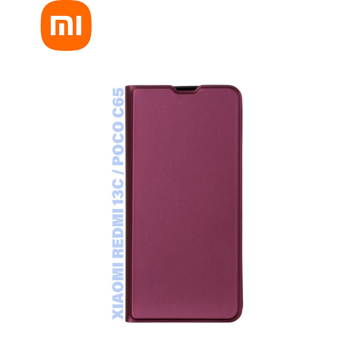 сумісність з моделями - Xiaomi Redmi 13C, Xiaomi Poco C65, Тип чохла для телефону - книжка, Призначення - модельний, Матеріал - пластик, силікон, Колір - бордовий