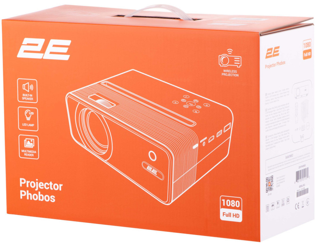Проектор 2E Phobos забезпечує чітке зображення завдяки технології LCD та роздільній здатності Full HD (1920х1080). Модель має потужне джерело світла, світловий потік становить 200 лм – запорука насиченої картинки. Контрастність 1 000:1 гарантує глибокий чорний і яскравий білий колір; з відстані 2,9 м діагональ проекції становить 100”. |
