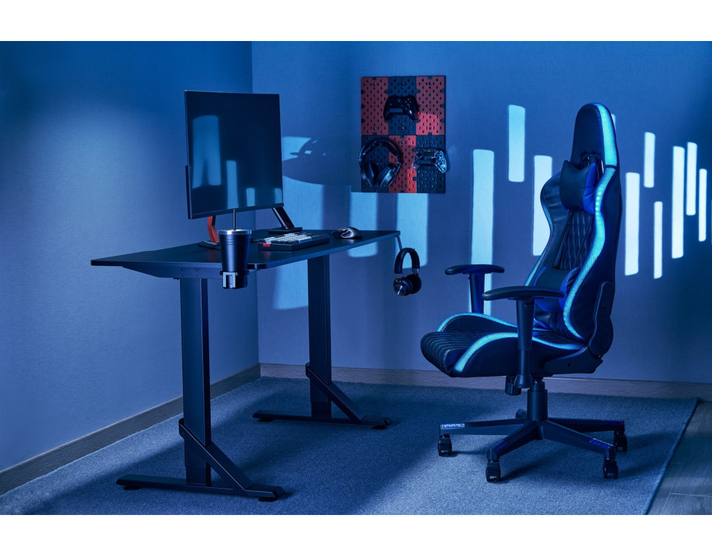 Великий надміцний ігровий стіл GD214 витримує навантаження до 100 кг, що достатньо для звичайних ігрових програм. Тримачі для чашок і навушників також доступні для того, щоб на робочому столі не було безладу. |