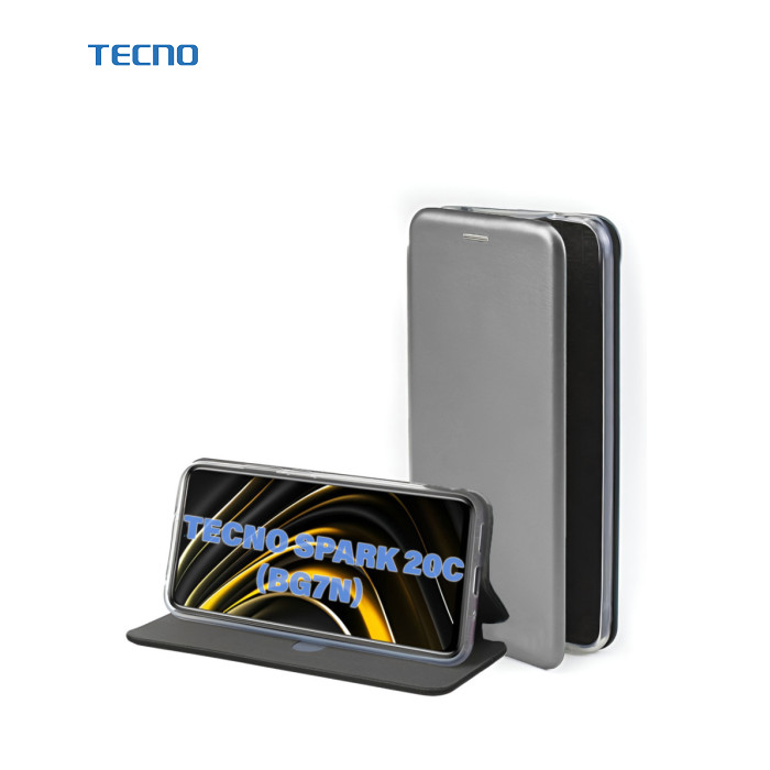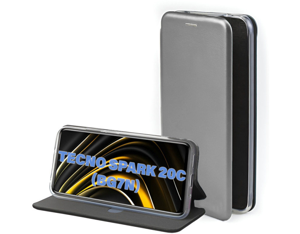 сумісність з моделями - Tecno Spark 20C, Тип чохла для телефону - книжка, Призначення - модельний, Матеріал - пластик, силікон, Колір - сірий