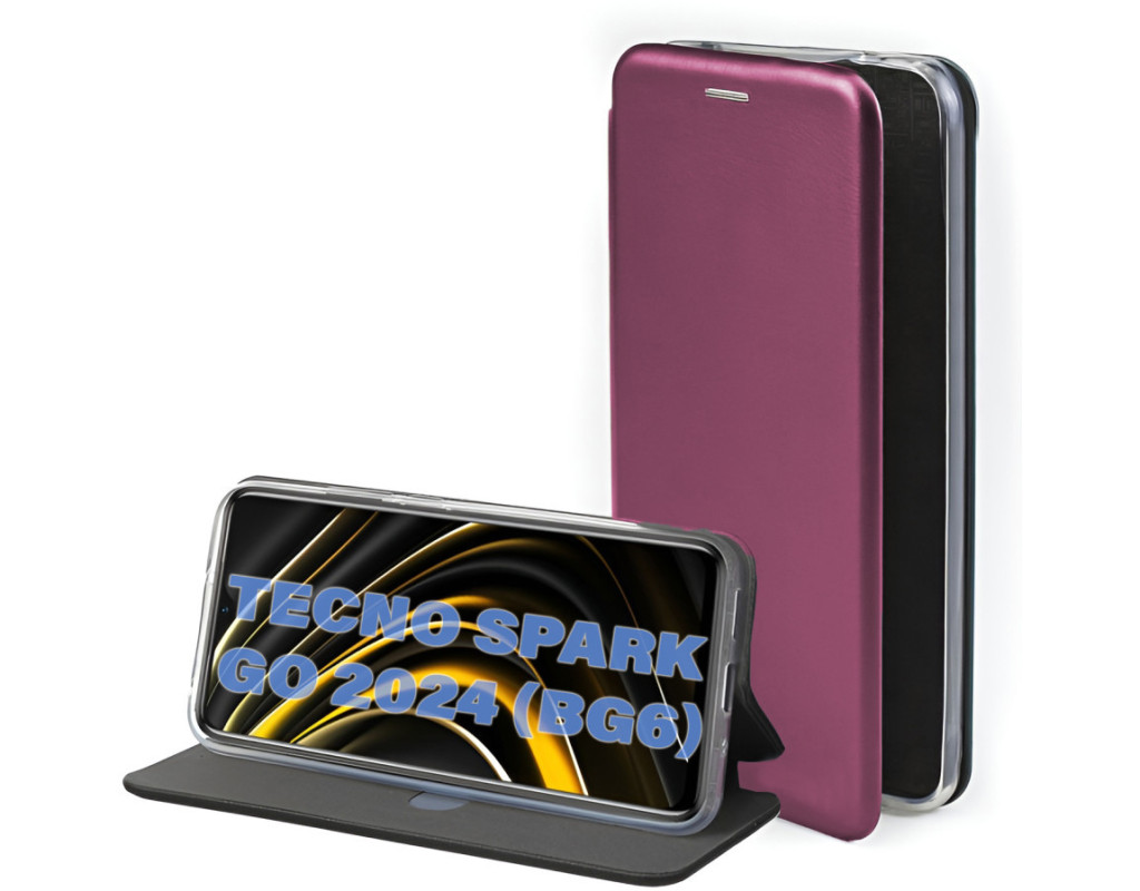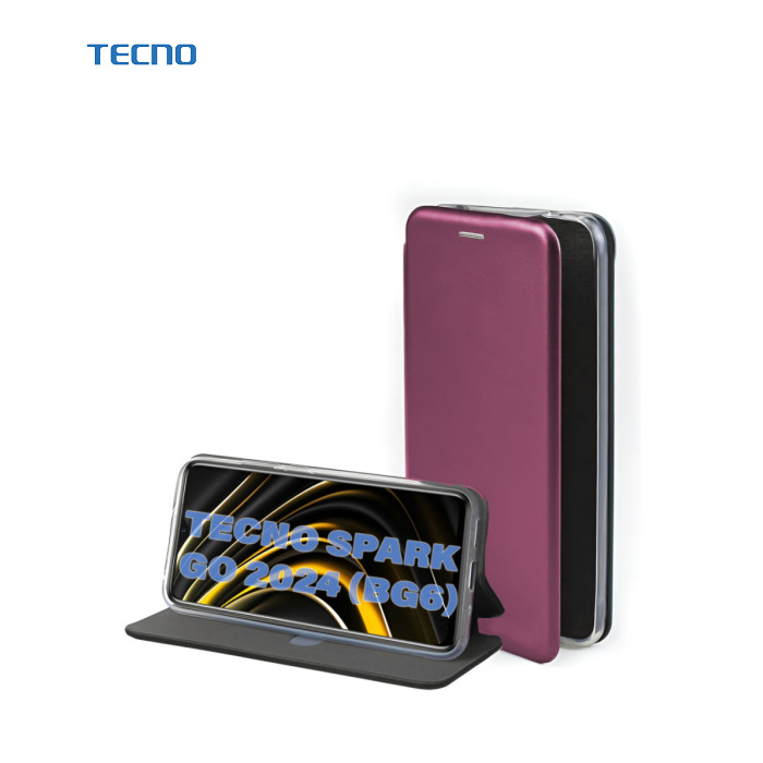 сумісність з моделями - Tecno Spark Go 2024, Тип чохла для телефону - книжка, Призначення - модельний, Матеріал - пластик, силікон, Колір - темно-червоний