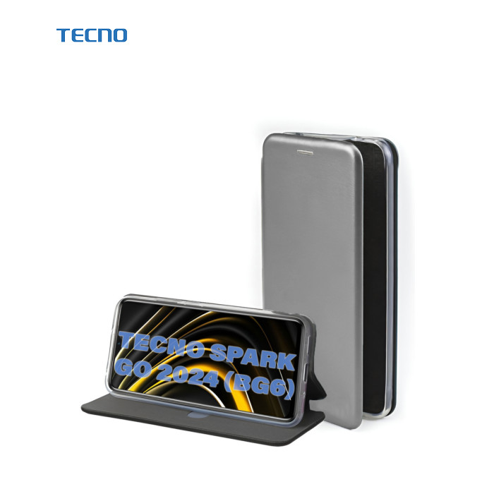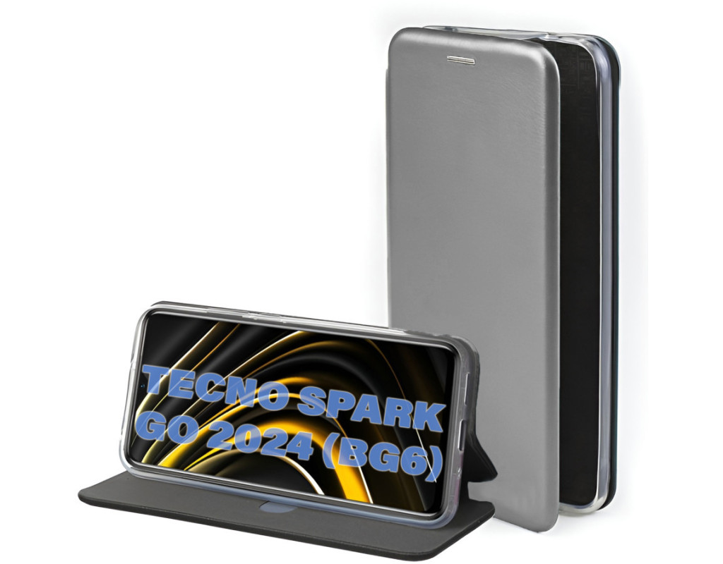сумісність з моделями - Tecno Spark Go 2024, Тип чохла для телефону - книжка, Призначення - модельний, Матеріал - пластик, силікон, Колір - сірий