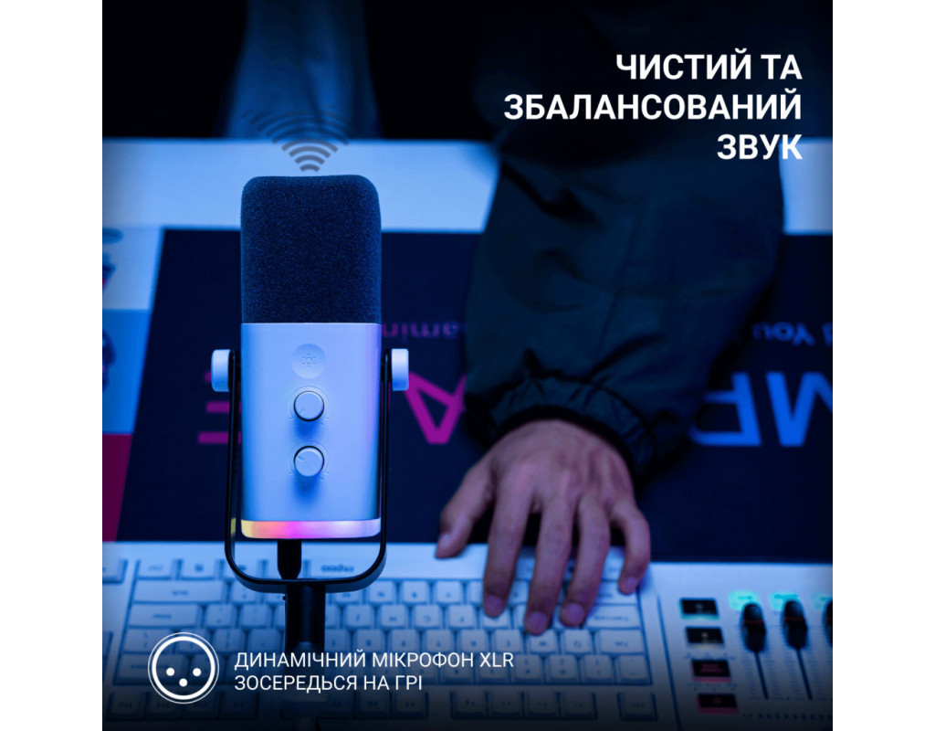 Динамічний мікрофон Fifine TAM8 з USB та XLR підключенням має здатність передавати ідеальний звук у неідеальних умовах і відмінно підійде для запису подкастів, стримів, озвучки, проведення трансляцій. Металевий пантограф з вбудованим сховищем для дротів є комфортним рішенням для організації вашого простору, а яскраве RGB підсвічування додасть атмосфери твоїй грі. ФункціональністьTAM8 відрізняється своєю універсальністю і здатністю передавати чіткий звук у різних умовах. Його кардіоїдний малюнок спрямованості забезпечує якісний звуковий запис, навіть у шумних середовищах. РегулюванняМікрофон оснащений кнопкою вимкнення мікрофона та кнопкою регулювання RGB підсвічування, що дозволяє вам налаштувати його відповідно до вашого настрою. Зручний роз'єм для навушників і двома регуляторами гучності, розташованими знизу мікрофона, забезпечує максимальний комфорт у користуванні. ПідключенняБлок живлення від USB та XLR забезпечує стабільний зв'язок і високоякісний звуковий сигнал. Роз'єм XLR дозволяє мінімізувати власний шум, забезпечуючи чистий звуковий запис. Оберіть мікрофон Fifine TAM8 і насолоджуйтеся якістю звуку та зручністю використання на новому рівні. TAM8 — ваш надійний помічник у світі аудіо звукозапису. |