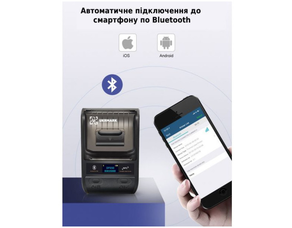 Особливості Програмні: - підключається до мобільних пристроїв (смартфонів/планшетів); - різномаїття шаблонів в хмарному сховищі; - робота з текстом, таблицями, лінійним кодом, QR-кодом, сканерами QR-коду; - розпізнавання голосовогу вводу та зображення. Апаратні: - Bluetooth/USB підключення; - відсутній ріббон; - термодрук; - портативний розмір; - вбудований літієвий акумулятор на 1500mAh; - підтримує Android / iOS.