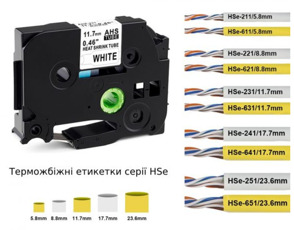 Трубка термозбіжна для принтера етикеток Сумісна з BROTHER HSe-221 Тип стрічки: термозбіжна Колір друку: чорний Колір стрічки: білий Для проводу діаметром: 2,6-5,1мм Ширина: 8.8 мм. Довжина: 1.5 м. Сумісна з принтерами Brother P-Touch Label Makers, Ukrmark RM-910 PT-D450、PT-E300、PT-H300、PT-D600、PT-E500、PT-E550W、PT-P700、PT-P710BT、PT-P750W、PT-H500、PT-D800W、PT-E800W |