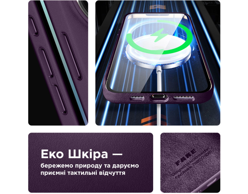 сумісність з моделями - Apple iPhone 15 Plus, Тип чохла для телефону - накладка, Призначення - модельний, Матеріал - штучна шкіра, Колір - пурпурний