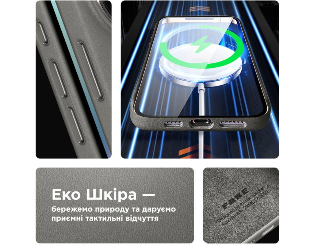 сумісність з моделями - Apple iPhone 15 Plus, Тип чохла для телефону - накладка, Призначення - модельний, Матеріал - штучна шкіра, Колір - сірий